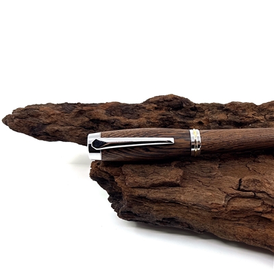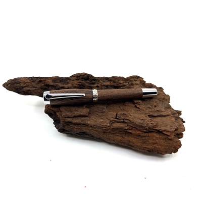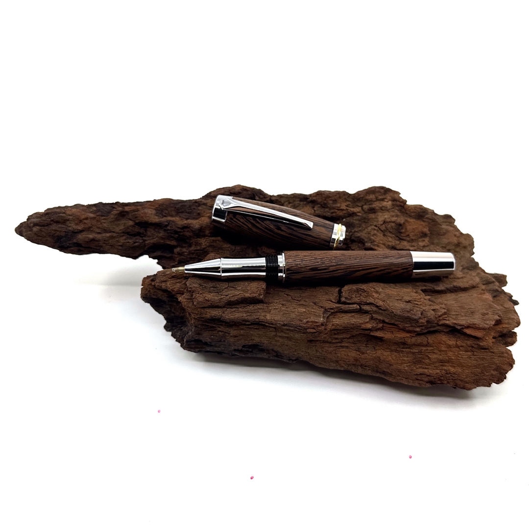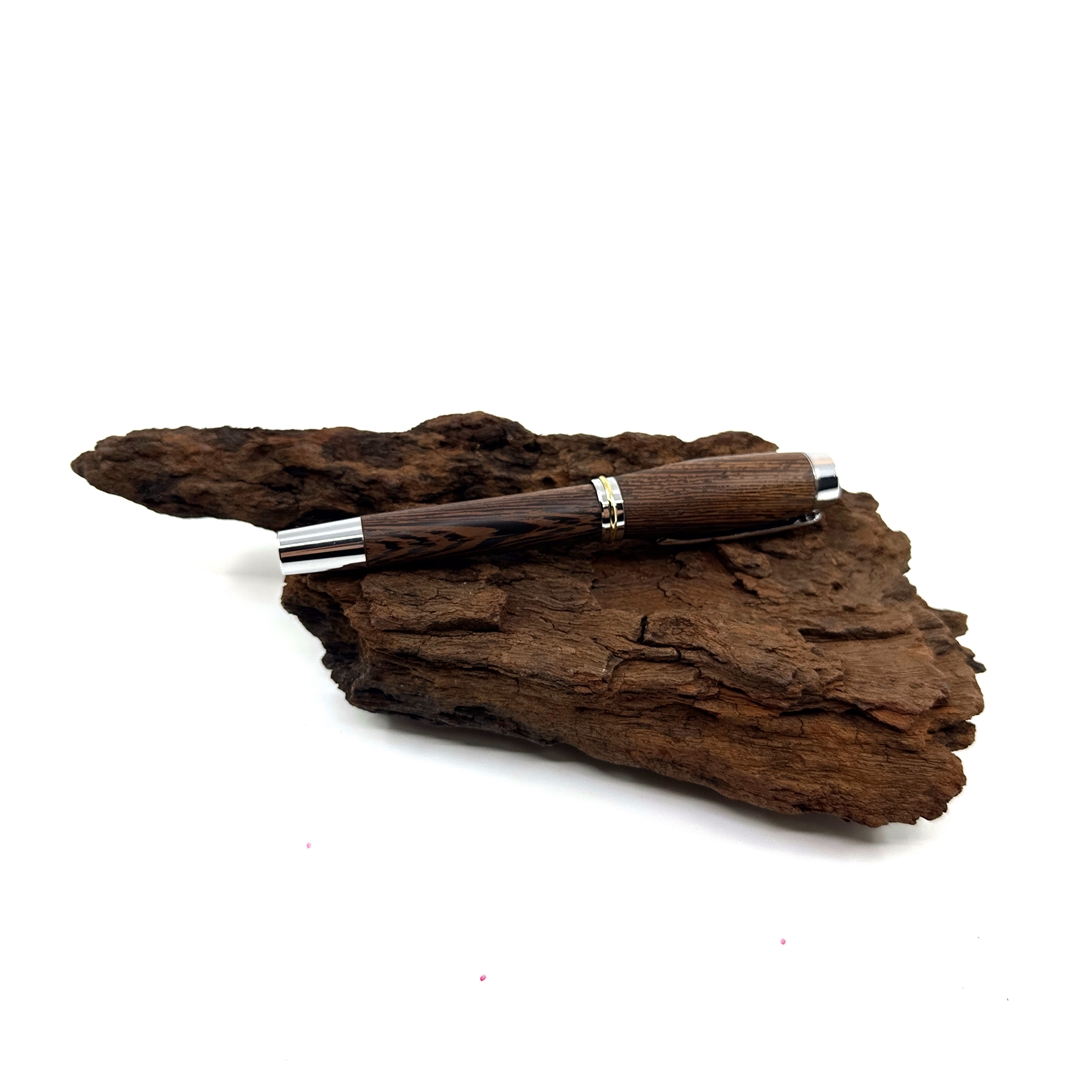 Každé z našich per je jedinečné svým vzhledem stejně tak jako každý z nás. Víme, že detaily jsou důležité, přečtěte si proto něco o srdci našich per. O krásném dřevu, ze kterého je vyrobeno. Tropické dřevo Wengé roste v rovníkové Africe. Jedná se o nádherně zbarvené kousky, které jsou velmi elegantní až ikonické. Tento šarm dřevu dodává nejen jeho kresba, ale i střídání tmavěhnědých a světlehnědých trachejí. Jeho struktura je pórovitá a práce při obrábění není jednoduchá. Dřevo se snadno štěpí aniž byste chtěli, avšak dobře se brousí, při opracování cítíme exotickou vůni afriky, naprosto odlišnou od evropských dřevin, výrazně zemitou a divokou. Pera ze dřeva Wengé mají krásnou čokoládovou barvu s výraznými černými proužky, působí velmi elegantně a proto se hodí k tmavým doplňkům. Pokud hledáte opravdu krásné pero pro muže, tak právě toto je skvělá volba. Opravdu elegantní je v kombinaci s titanovou nebo stříbrnou mechanikou.