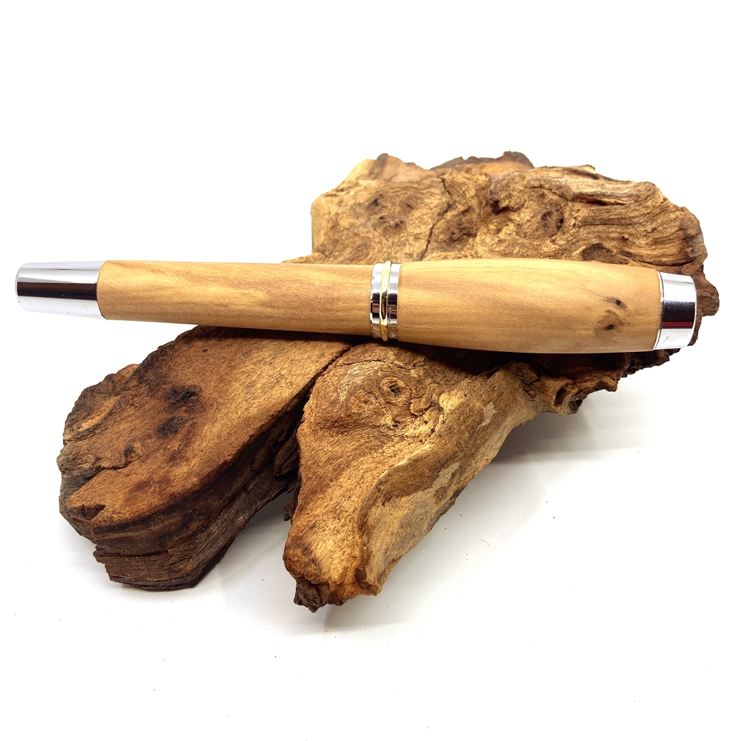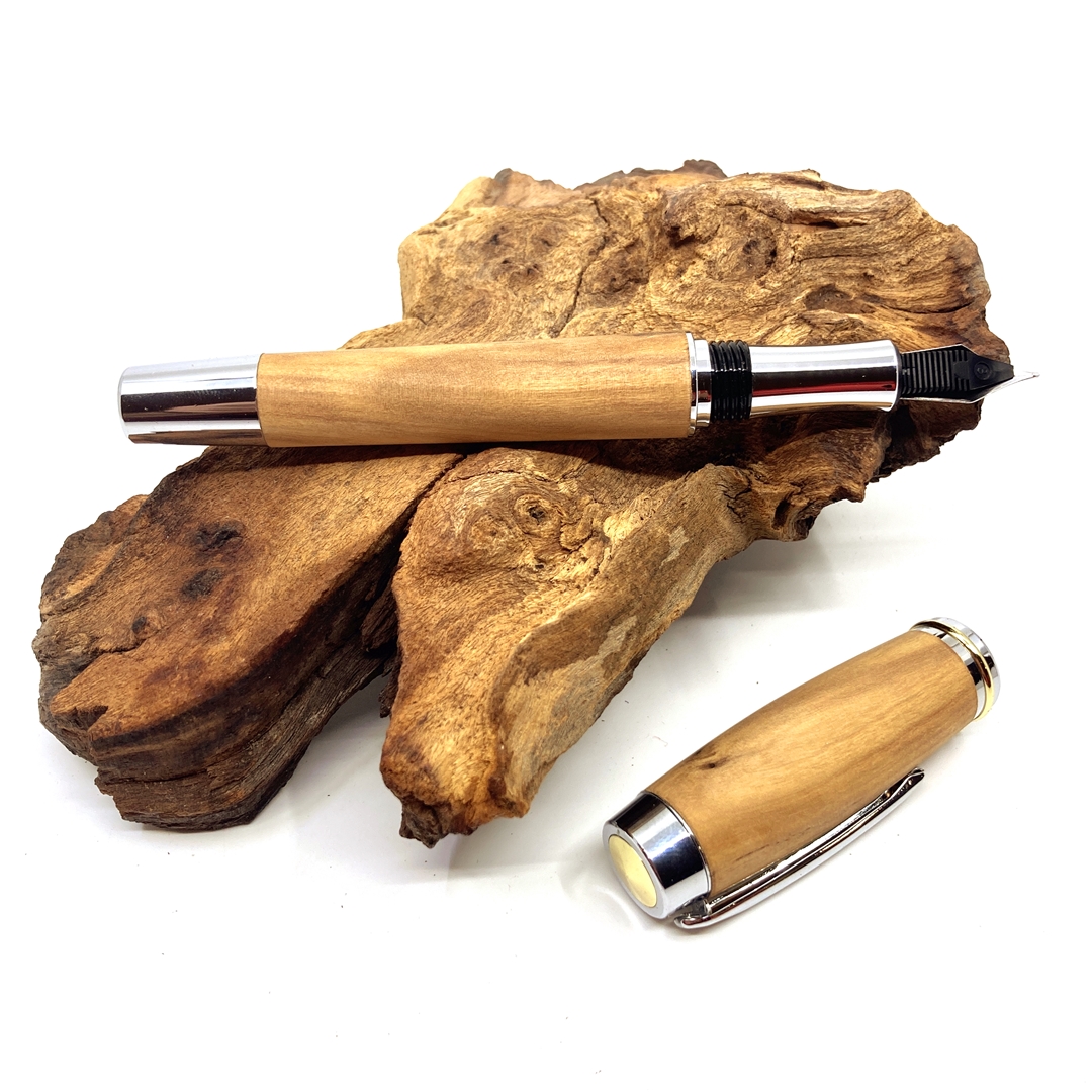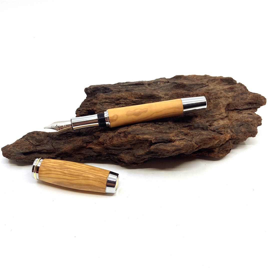 Každé z našich per je jedinečné svým vzhledem stejně tak jako každý z nás. Víme, že detaily jsou důležité, přečtěte si proto něco o srdci našich per. O krásném dřevu, ze kterého je vyrobeno. Oliva je nádherné a velmi pevné dřevo s naprosto originální kresbou, postrádající léta, avšak s nádhernou žlutou až medovou barvou protkanou nepravidelnými puhy tmavě hnědé až černé barvy. Pečlivě vybrané kousky dřeva jsou desítky let staré a pocházejí až z daleké Sicílie. Při řezání, vrtání a obrábění vždy cítíme vůni olivového oleje, která nás jako kouzlem přenese do těchto dálek. Každé pero je touto vůní doslova prosyceno!