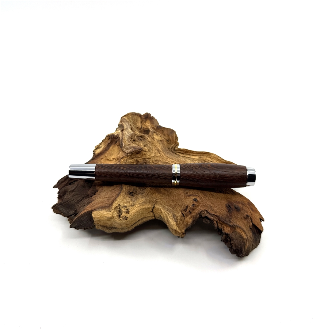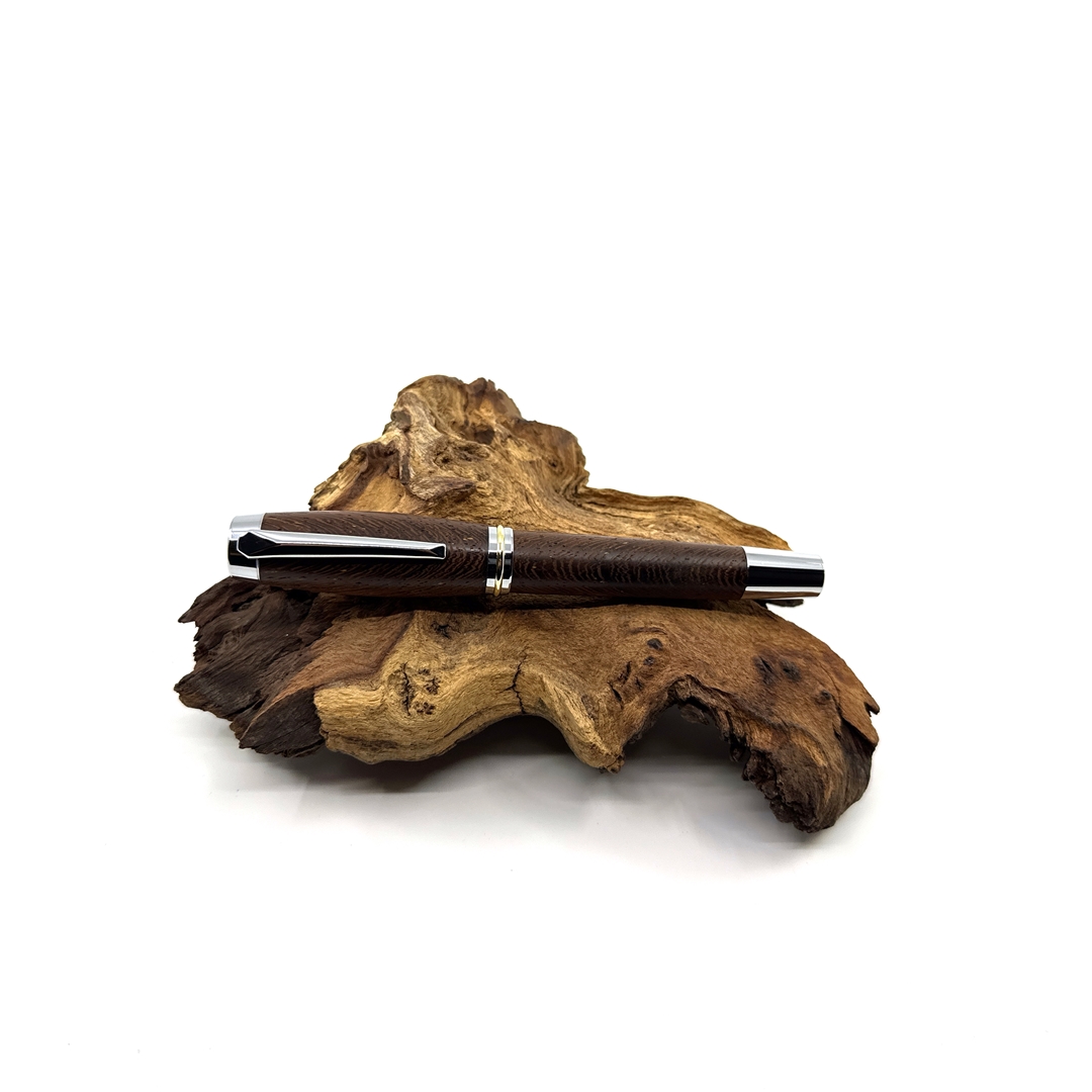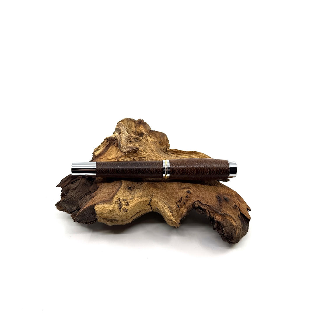 Každé z našich per je jedinečné svým vzhledem stejně tak jako každý z nás. Víme, že detaily jsou důležité, přečtěte si proto něco o srdci našich per. O krásném dřevu, ze kterého je vyrobeno. Tropické dřevo Wengé roste v rovníkové Africe. Jedná se o nádherně zbarvené kousky, které jsou velmi elegantní až ikonické. Tento šarm dřevu dodává nejen jeho kresba, ale i střídání tmavěhnědých a světlehnědých trachejí. Jeho struktura je pórovitá a práce při obrábění není jednoduchá. Dřevo se snadno štěpí aniž byste chtěli, avšak dobře se brousí, při opracování cítíme exotickou vůni afriky, naprosto odlišnou od evropských dřevin, výrazně zemitou a divokou. Pera ze dřeva Wengé mají krásnou čokoládovou barvu s výraznými černými proužky, působí velmi elegantně a proto se hodí k tmavým doplňkům. Pokud hledáte opravdu krásné pero pro muže, tak právě toto je skvělá volba. Opravdu elegantní je v kombinaci s titanovou nebo stříbrnou mechanikou.