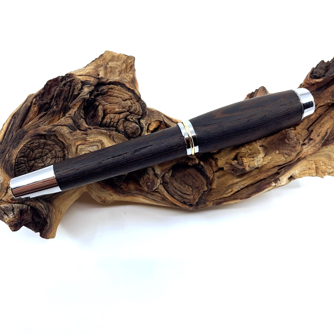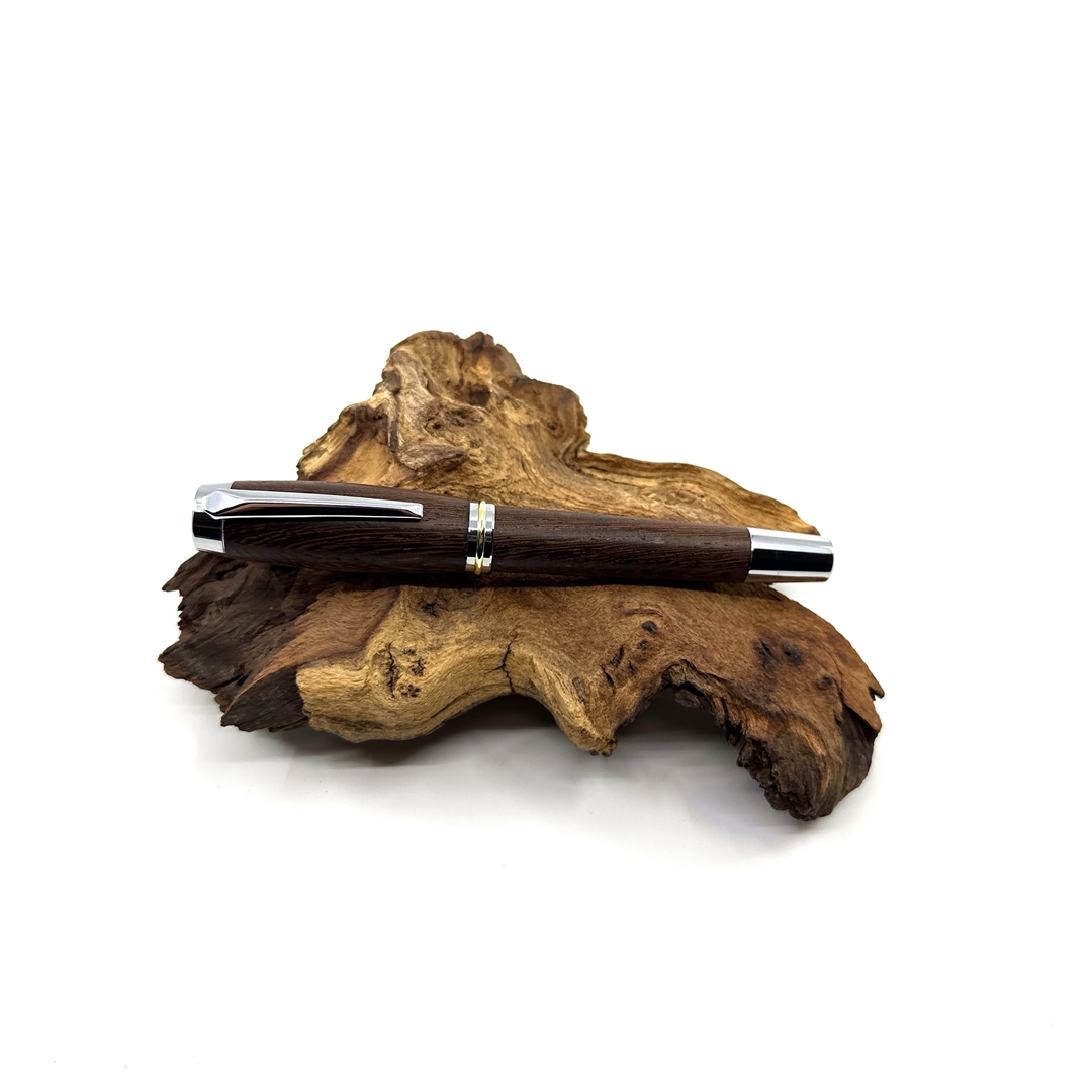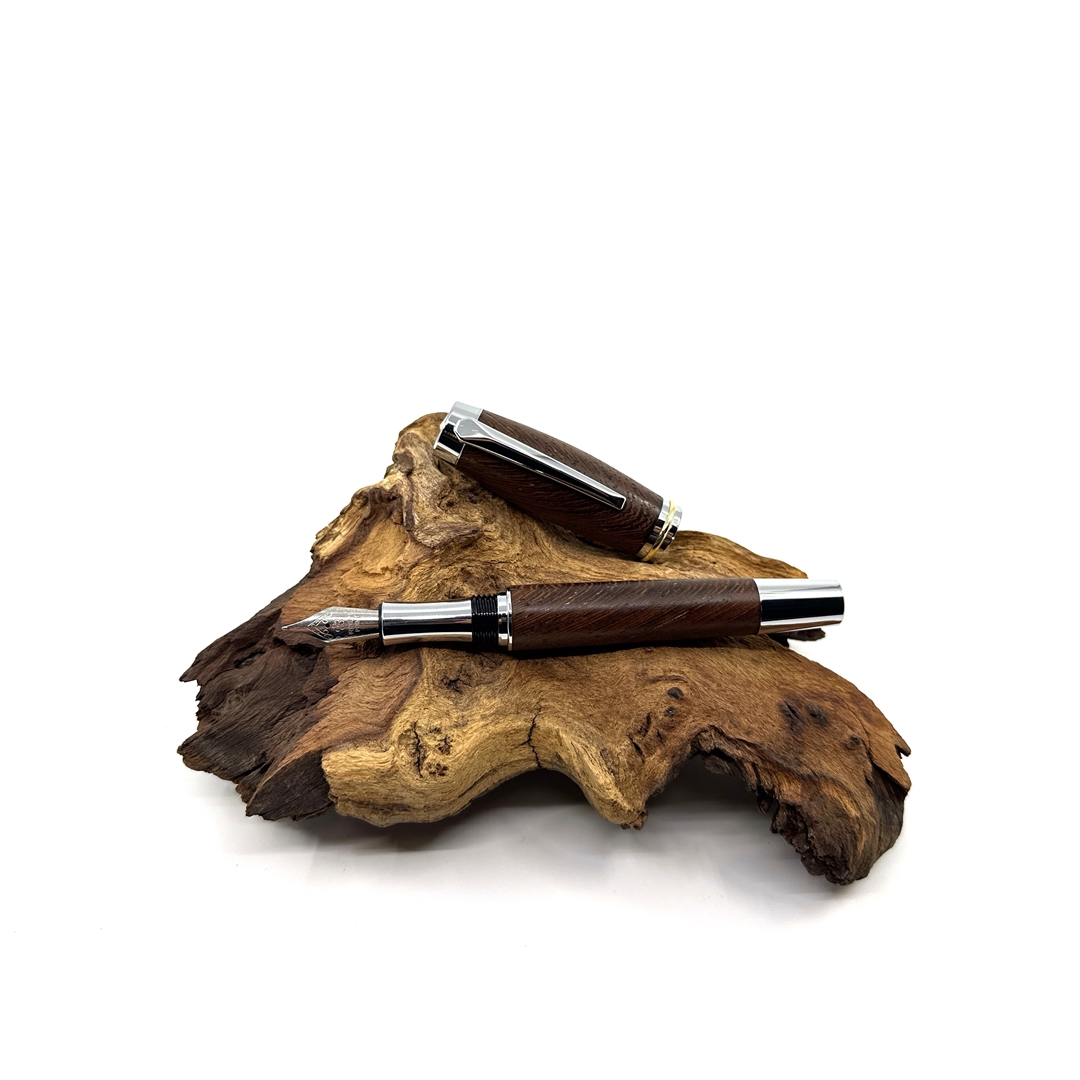 Každé z našich per je jedinečné svým vzhledem stejně tak jako každý z nás. Víme, že detaily jsou důležité, přečtěte si proto něco o srdci našich per. O krásném dřevu, ze kterého je vyrobeno. Tropické dřevo Wengé roste v rovníkové Africe. Jedná se o nádherně zbarvené kousky, které jsou velmi elegantní až ikonické. Tento šarm dřevu dodává nejen jeho kresba, ale i střídání tmavěhnědých a světlehnědých trachejí. Jeho struktura je pórovitá a práce při obrábění není jednoduchá. Dřevo se snadno štěpí aniž byste chtěli, avšak dobře se brousí, při opracování cítíme exotickou vůni afriky, naprosto odlišnou od evropských dřevin, výrazně zemitou a divokou. Pera ze dřeva Wengé mají krásnou čokoládovou barvu s výraznými černými proužky, působí velmi elegantně a proto se hodí k tmavým doplňkům. Pokud hledáte opravdu krásné pero pro muže, tak právě toto je skvělá volba. Opravdu elegantní je v kombinaci s titanovou nebo stříbrnou mechanikou.